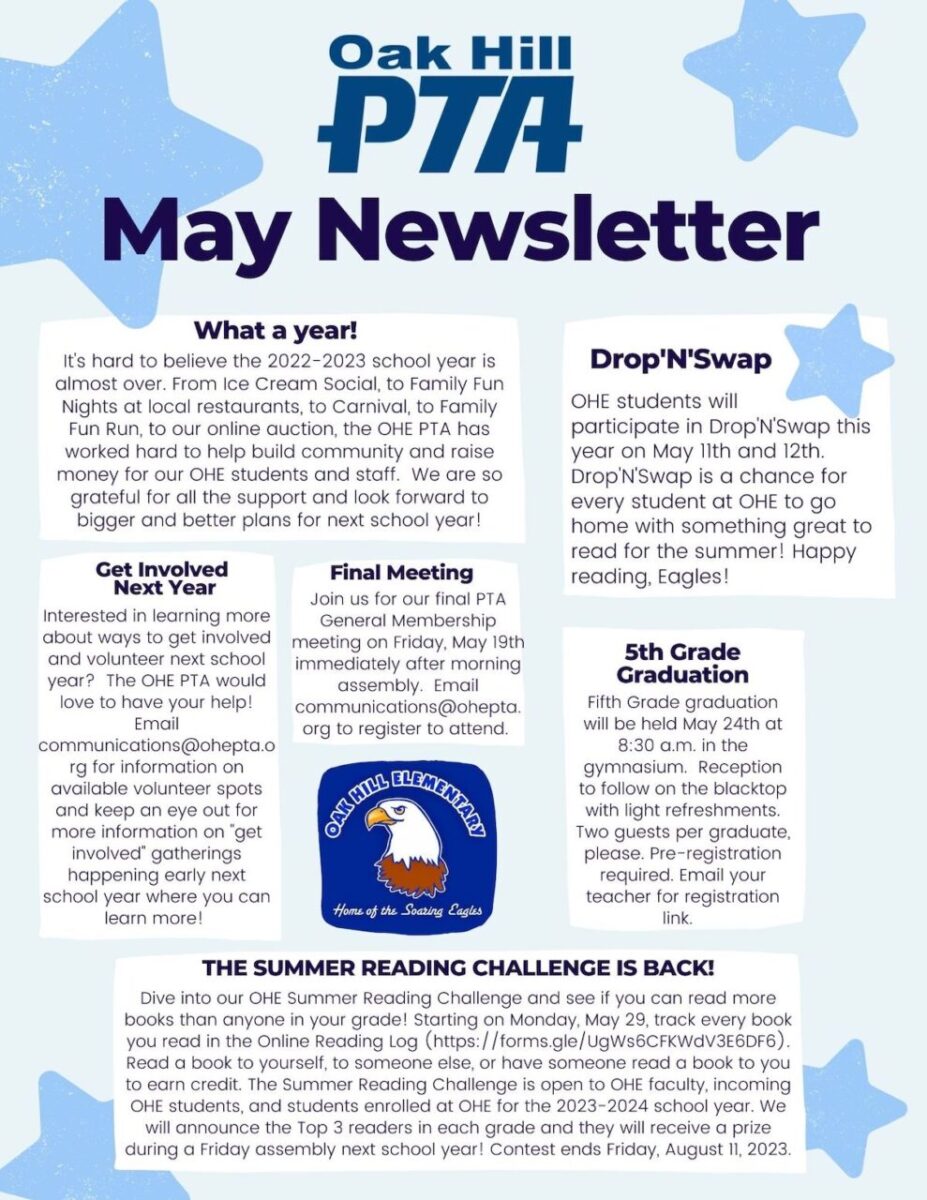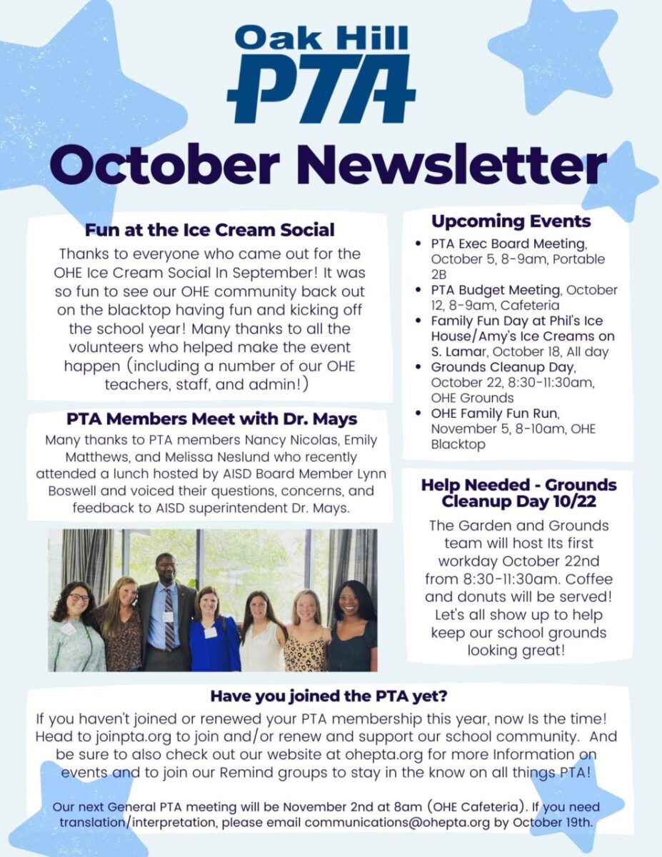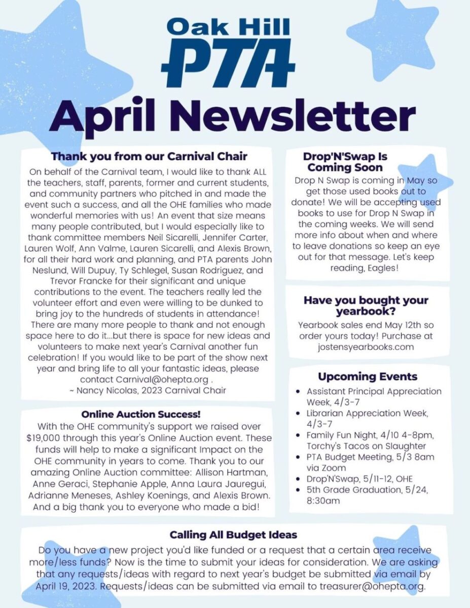 The PTA sends home printed newsletters with our kids every month, and our principal sends parents the Smores newsletter via text. Links are below!