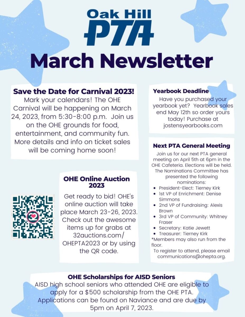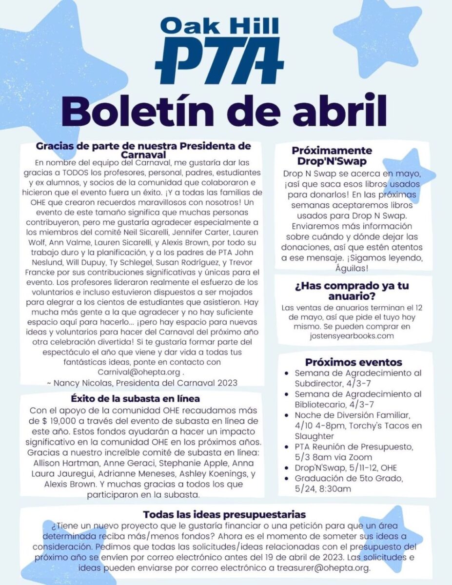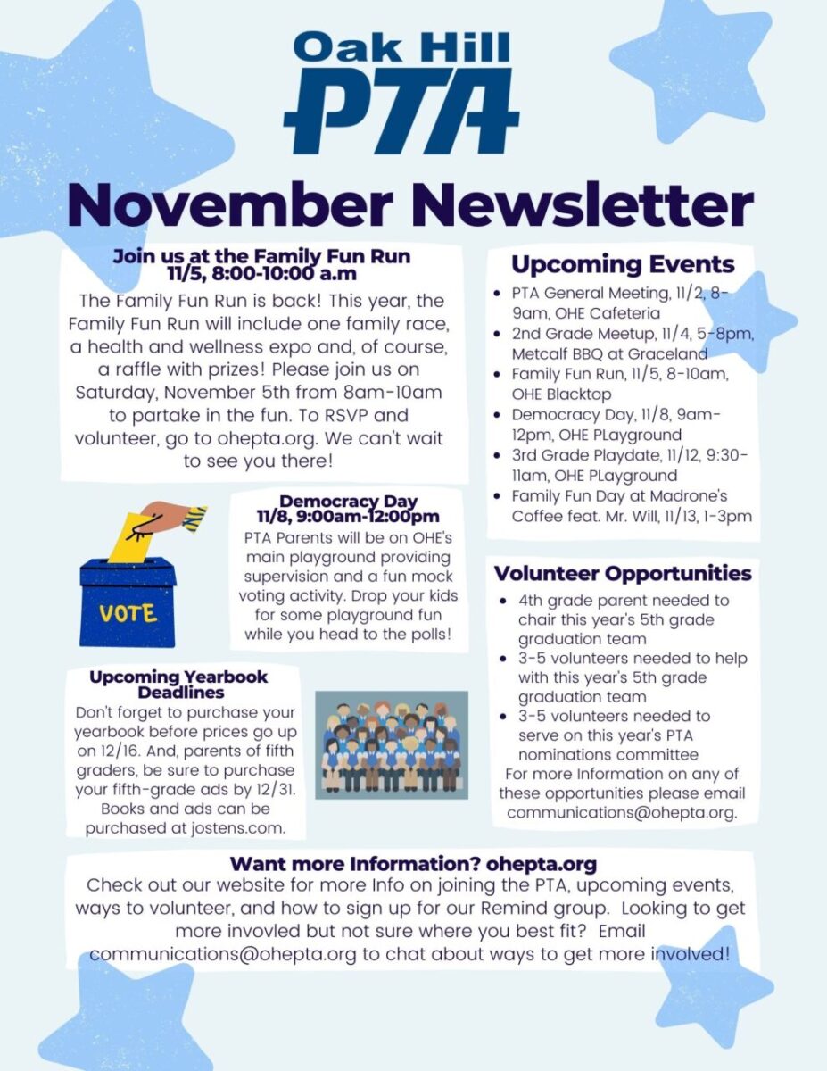The PTA sends home printed newsletters with our kids every month, and our principal sends parents the Smores newsletter via text. Links are below!
